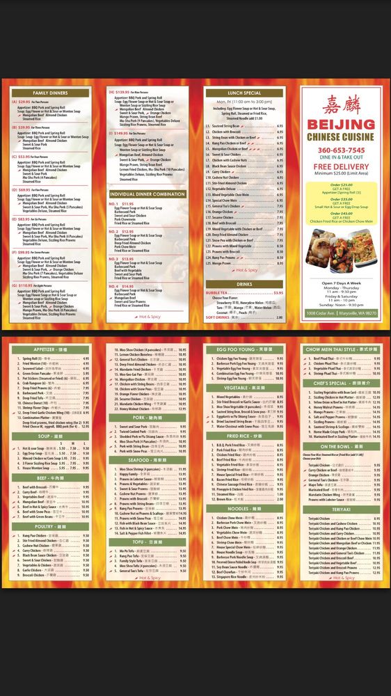 Welcome to Beijing Chinese Cuisine, where culinary delights await you in the heart of Marysville, WA. This inviting establishment is renowned for its exceptional service and a menu brimming with choices that cater to every palate.